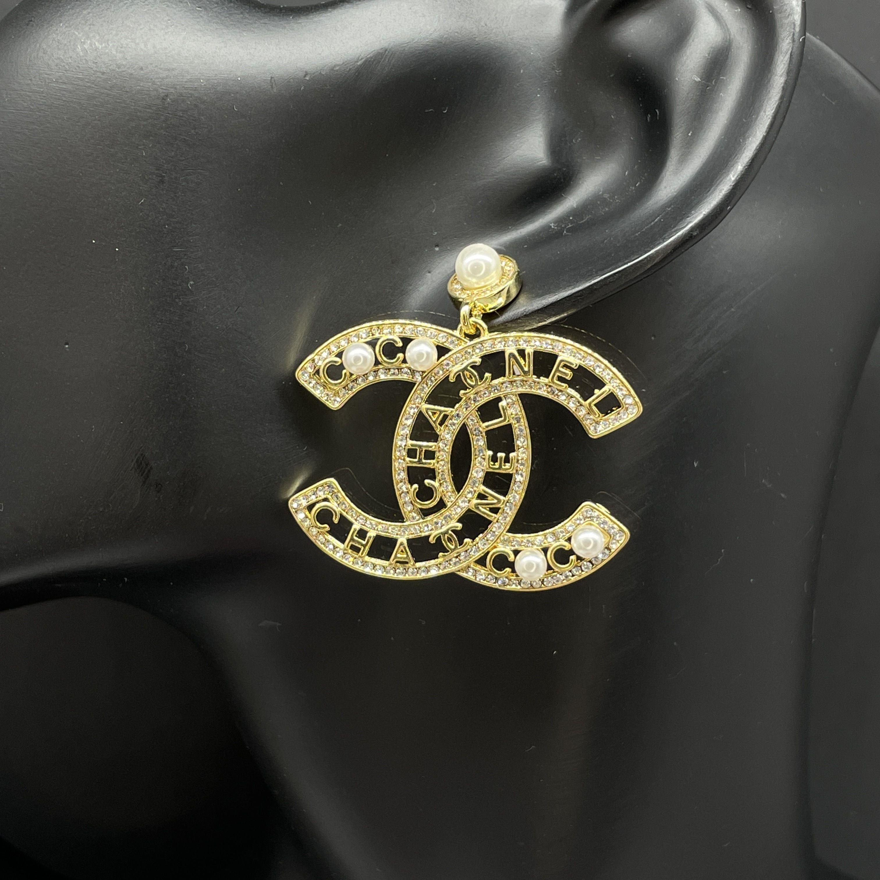 Chanel C C Earrings Pearls Crystals