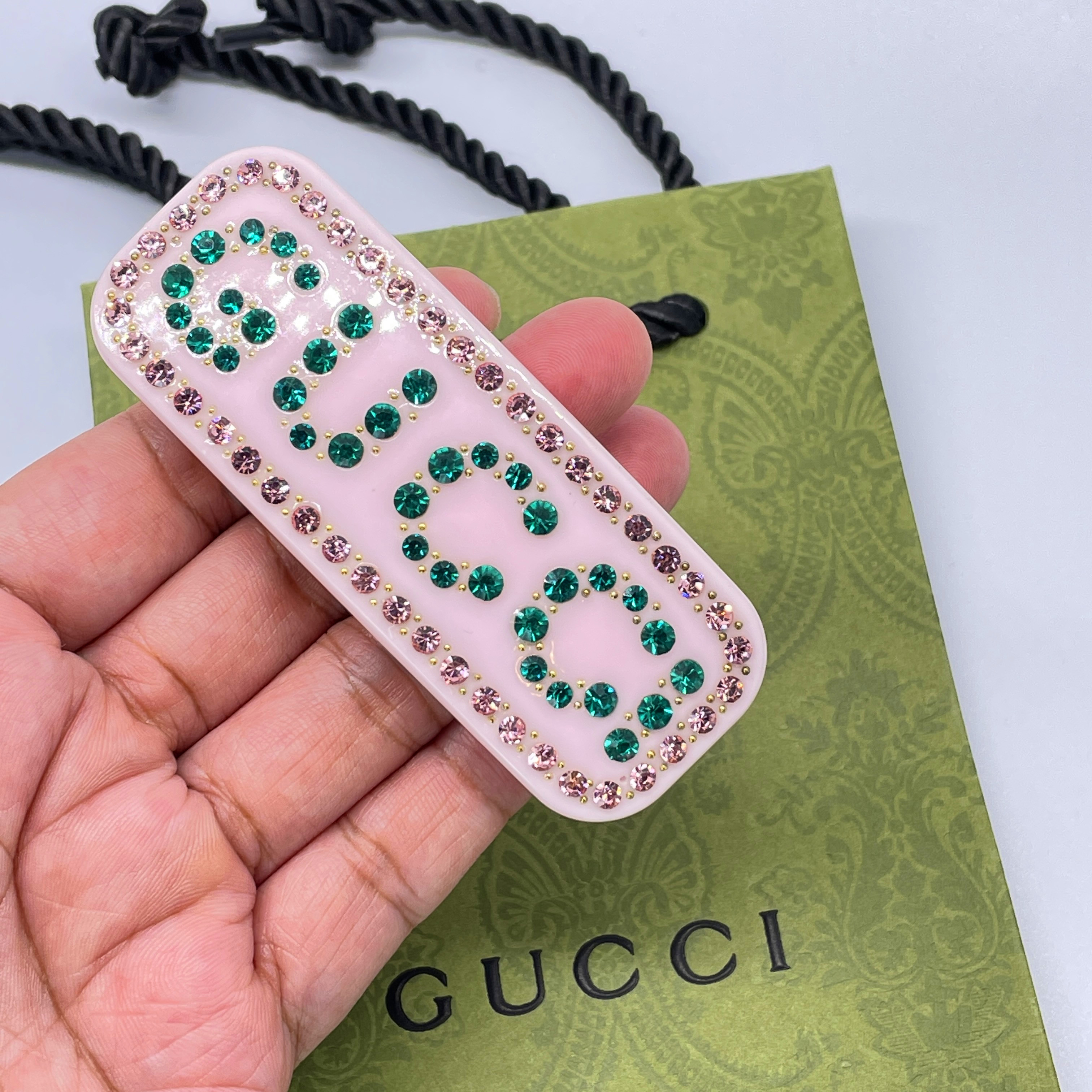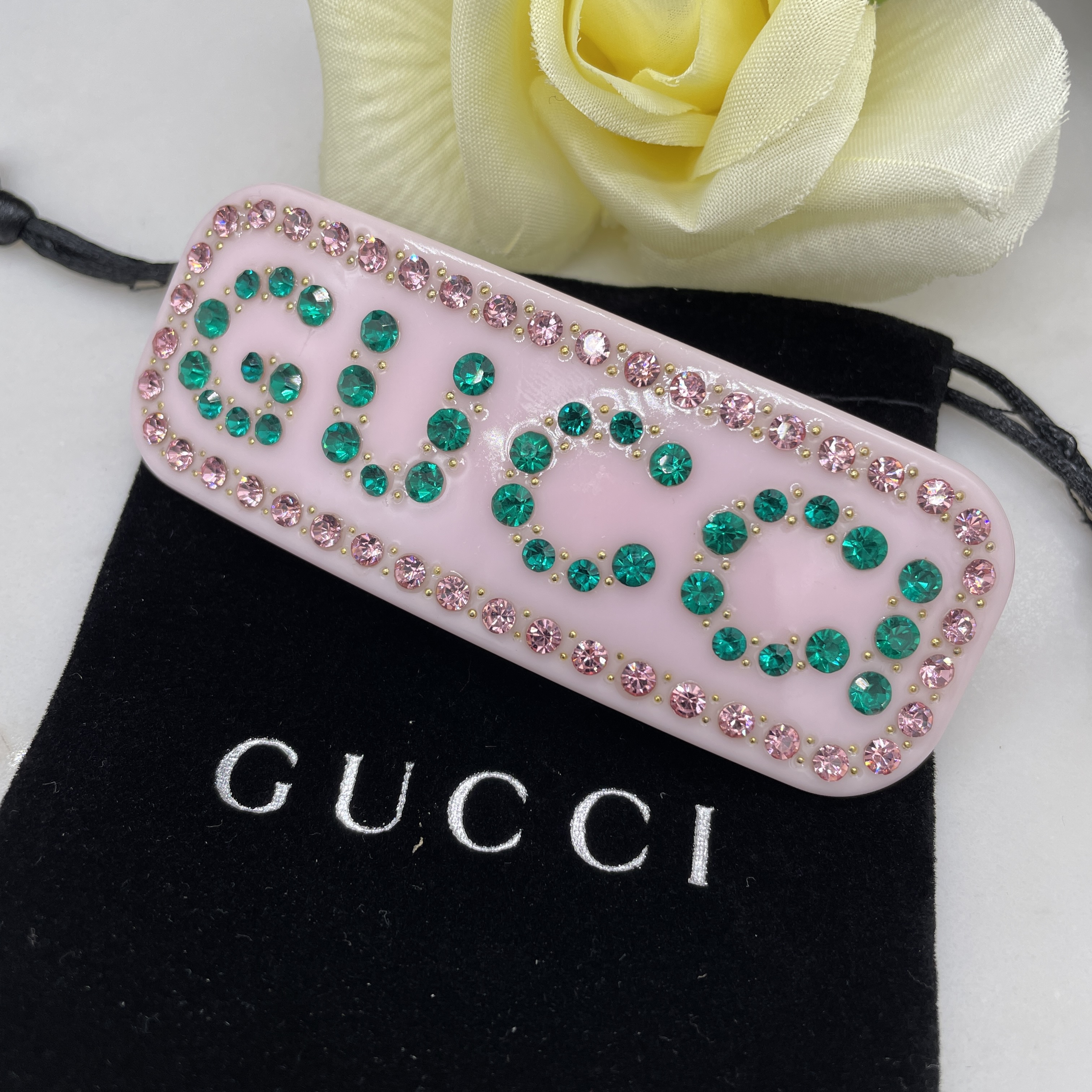 Size 8.6*3.2 cm Color Pink/ Brown/Black material: Resin Hair Silded with Crystals Brand new , a logo dust bag inculding purchase