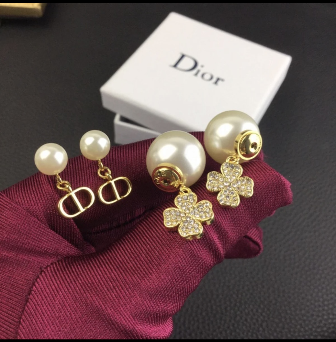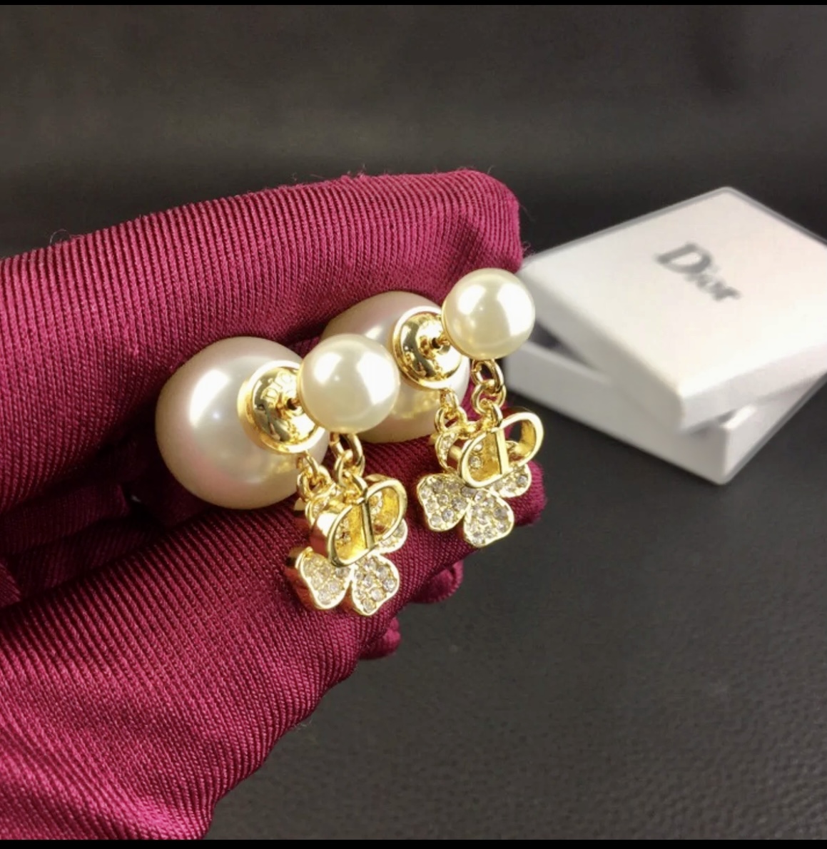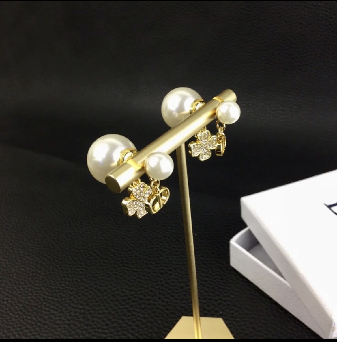 Material: Brass by Gold Finish Pearl size : 1.6 cm / 0.8 cm, H 3 cm Brand new,Come with logo package Material Brass Gold Metal, Resin Pearls, Crystals