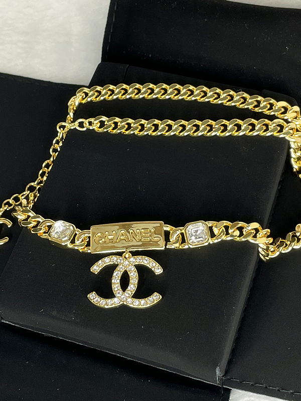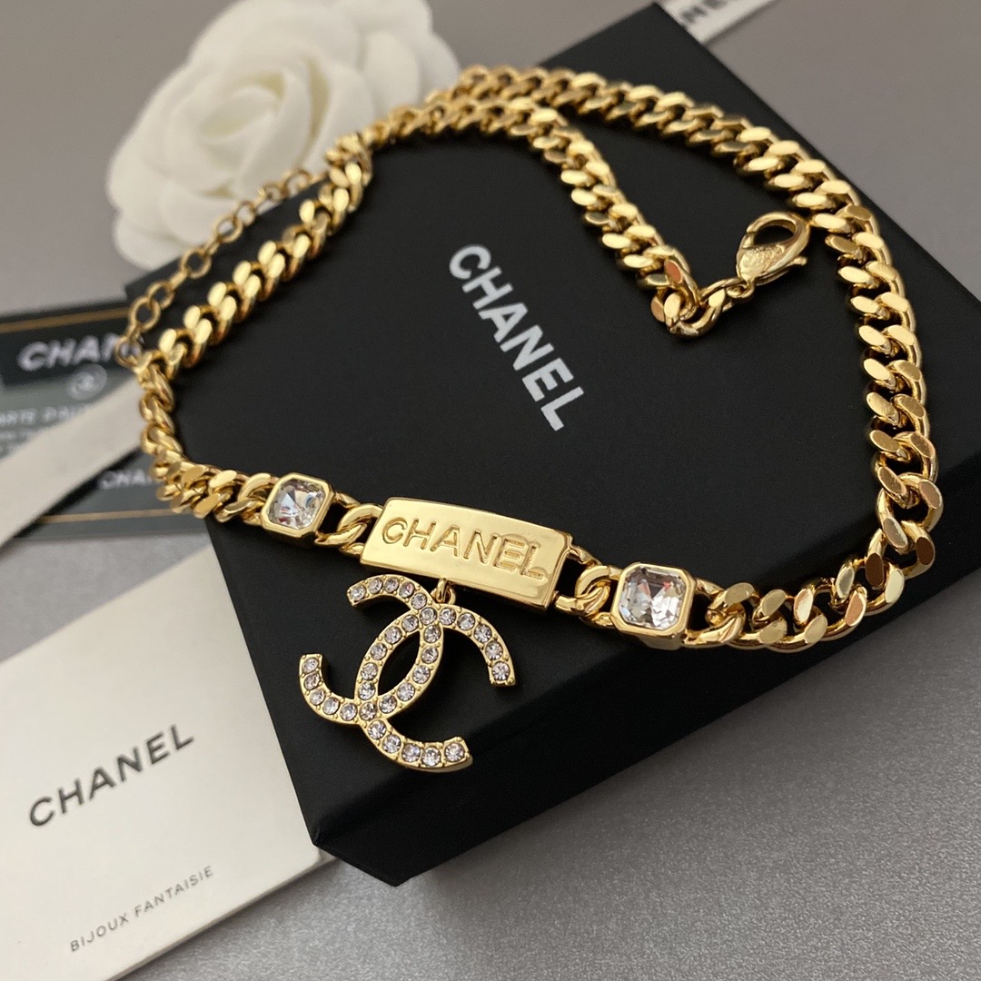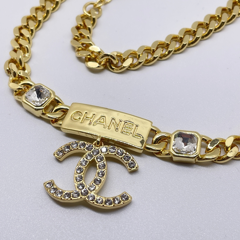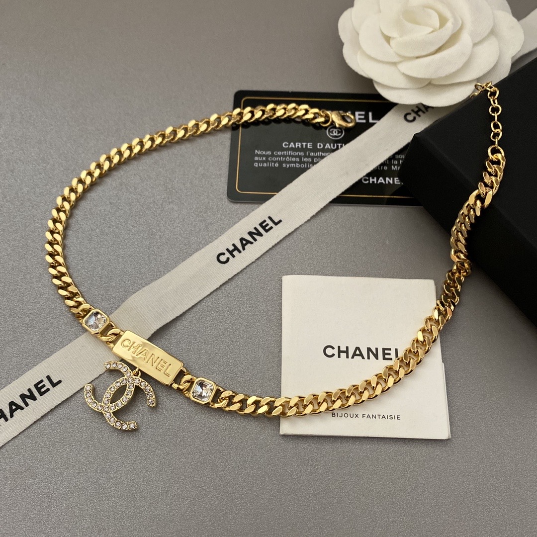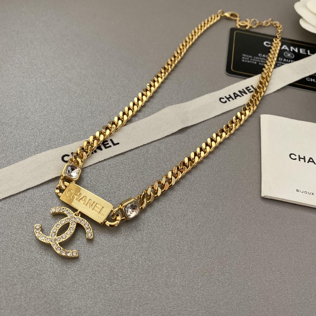Chanel Chain CC Pendant Necklace Crystals